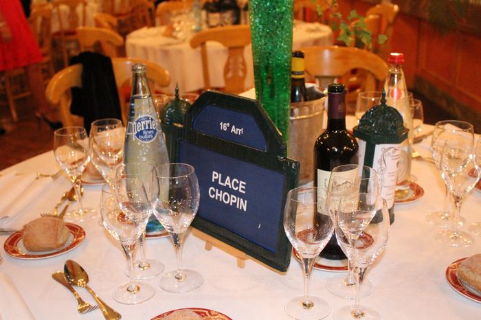 Je voudrais savoir comment vous allez faire pour que les invités trouvent leurs tables en dehors du plan de table une fois qu'ils connaissent le nom, comment distinguer leur table au milieu de la salle ? Allez-vous identifier vos tables par des...