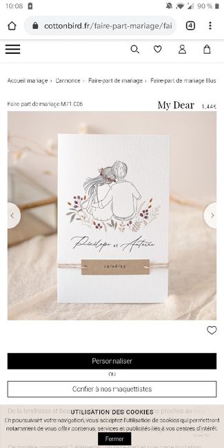 Salut la Commu ! Saisie d'un grand doute j'ai besoin de Vos Avis ! Je suis tombée amoureuse de ce faire part mais j'ai lu beaucoup de mal du site cottonbird. Certaines d'entre vous ont commandé ? Ça c'est bien passé ? Merci pour vos retours !! ...