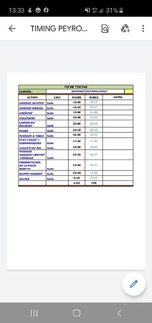 Hello c est encore moi !! La chargé de projet de ma salle m a envoyé une ebauche de planning pour le jour J sauf qu avec le dj nous avions prevu 2 jeux car la commercial m avait dit que le vdh et l entrée sous forme de cocktail était séparé en deux...