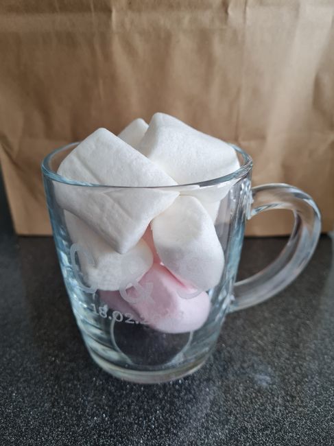 Mes cadeaux pour les invités sont arrivés aujourd'hui 🤗. Pour un mariage d'hiver je pensais mettre des guimauves blanches dedans pour un effet neige.