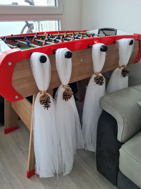 Préparation de mes bancs d'Eglise et des nœuds de voiture. Je suis plutôt fière du résultat sachant que je ne coud jamais !