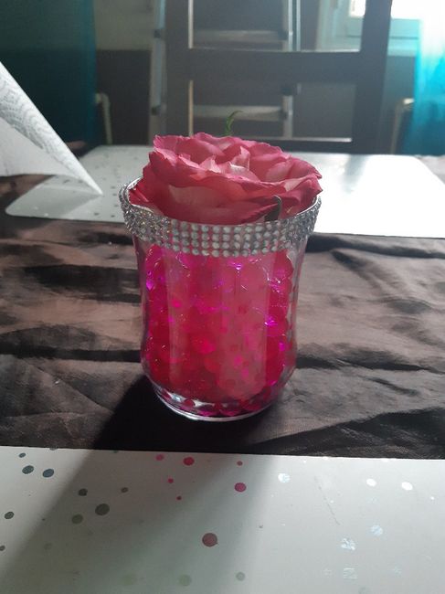 Bonjour a tous J avais envie de partager avec vous un petit essai (il manque des éléments) de la decos que nous feront , donnez moi vos avis? En sachant que avec la boule toute blanche les perle d eau seront rose .
