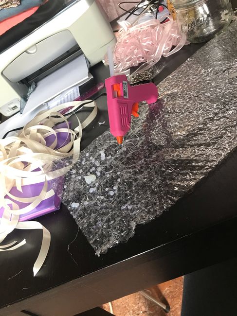 Bonjour tt le monde, mariage normalement le 8 août 🤞🏻🤞🏻 et je veux y croire du coup je continu le ma déco ce matin confection des baguettes ruban pour notre entrée dans la salle