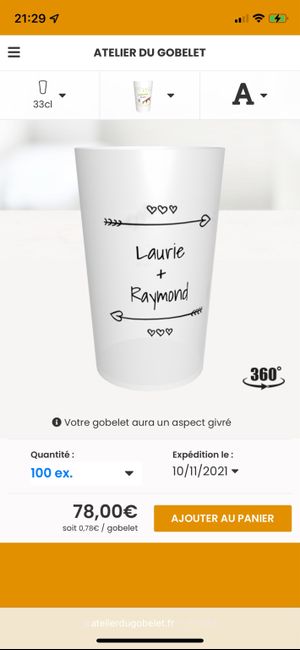 Coucou les FM juste pour vous montrer la création de la petite entreprise mes petits rubans. Au top, j’ai payé mardi et je les ai reçu hier… les prix sont + qu’abordable j’ai payé 107€ les 150 gobelets. Vous pouvez creer votre design ou choisir parmi...