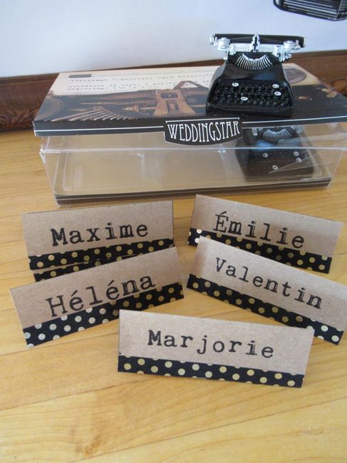 Bonjour, Les marque-place sont souvent très coûteux, du moins les plus originaux ! Comme ces jolies machines à écrire à plus de 2 euros l'unité ! Comme il ne s'agit pas, selon moi, d'un élément des plus essentiel dans le budget du mariage, j'ai opté...