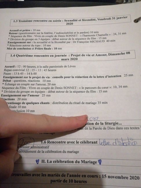 Bonjour les FM, je viens vers vous car je viens de recevoir les 2 rdv avec la paroisse pour la préparation du mariage! En quoi ça consiste? Donnez moi des conseils et comment cela se déroule? Merci à vous!!!!