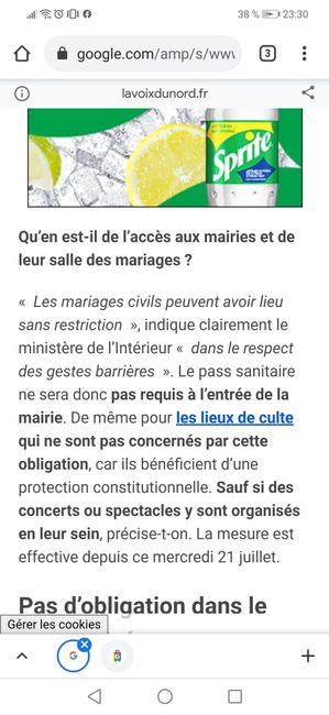 Hello à toutes et à tous, J'ai besoin de vos lumières car je suis totalement perdue. La semaine dernière la personne qui gère les mariage à la mairie nous a dit qu'il y aurait le port du masque mais que nos 50 invités pourraient assister à la...