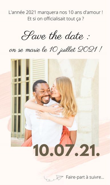 Coucou les filles ! Ca y est on est a moins d'un an de notre mariage ! Le compte à rebours est lancé ! Nous venons d'envoyer numériquement nos save the date à la famille et amis proches ! On a eu que de bons retours ca fait plaisir Je vous le mets...