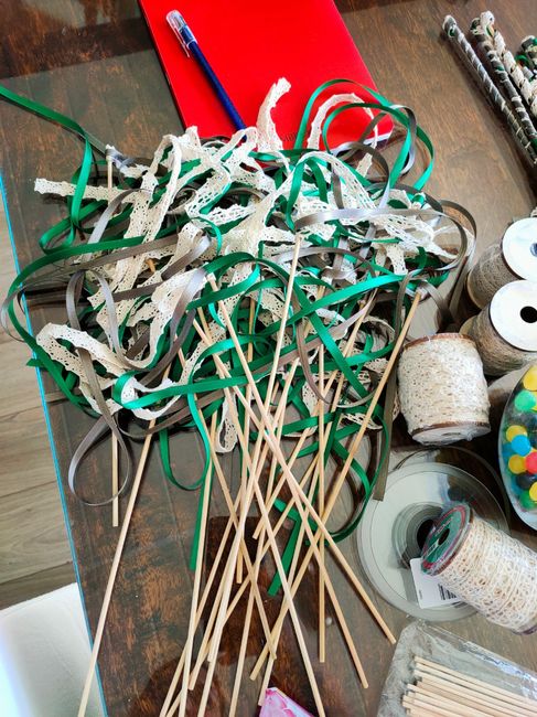 Coucou à tous Nous avons choisi de prendre des baguettes rubans pour la sortie de la mairie, néanmoins nous ne sommes pas décidés quant aux couleurs... Je pense que sur les photos ça serait plus joli que ce soit très coloré ou au moins une couleur...