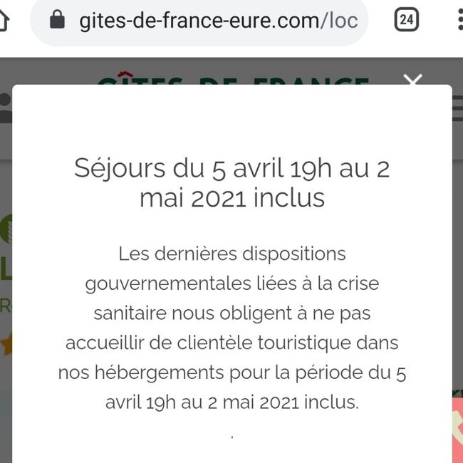 Mariage du 22 mai. Après avoir fait une croix sur mon domaine avec 100 personnes voilà que même mon gite sur gite de France avec 20 personnes interdisse les locations... 😢 Savez vous dans quelle categorie appartient gite de France ? (Hôtellerie ?...