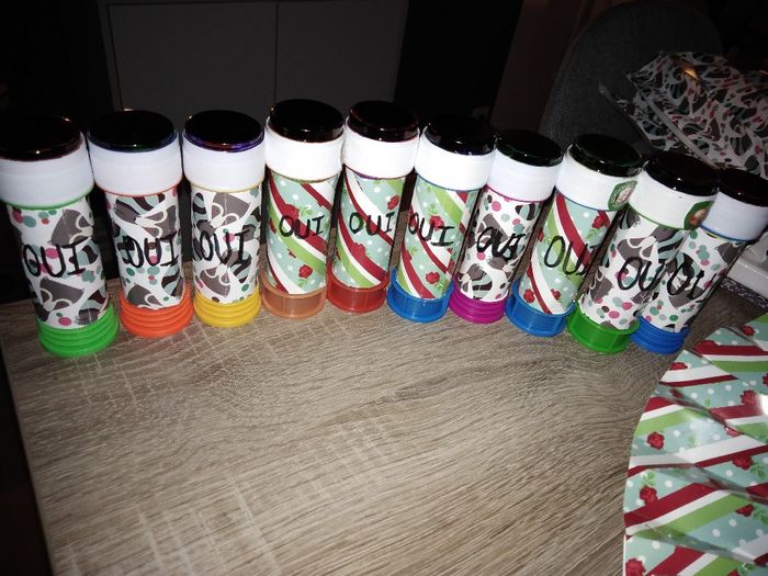 Coucou Ici sa avance et vous ? Scintillant pour l'ouverture de bal Bracelet lumineux pour la soirée Tube a bulle pour la sorti de la mairie Noeud pour la voitureStylo pour livre d'or Et trame pour la ceremonie laïque écrite Mon homme est toujours...