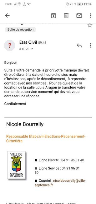 👋👋bonjour à toutes, je viens vers vous car je commence à me poser des questions je suis une personne très positive mais la je doute. 🤨Avec le confinement qui va être prolongé, je souhaiterais savoir vous qui vous mariez à la même date que moi avez...