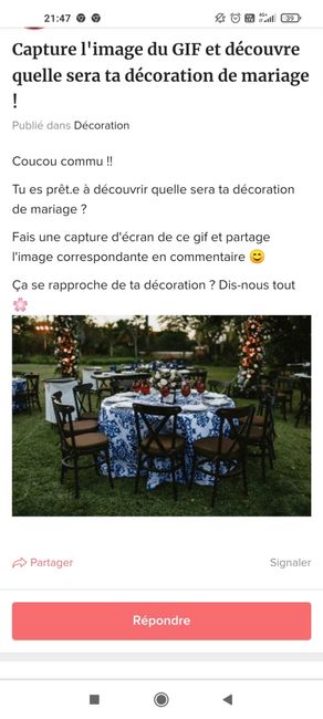 Coucou commu !! Tu es prĂȘt.e Ă dĂ©couvrir quelle sera ta dĂ©coration de mariage ? Fais une capture d'Ă©cran de ce gif et partage l'image correspondante en commentaire đ Ăa se rapproche de ta dĂ©coration ? Dis-nous tout đž