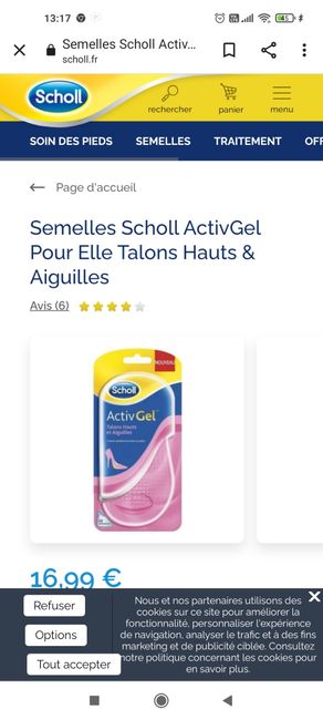 Hello les girls, à 10 jours du mariage je me pose des questions sur l'efficacité des semaines Scholl pour talons. Paraßt-il que ça aide contre la chauffe de la voûte plantaire et améliore le confort ... J'aimerais avoir des retours pour celles qui...