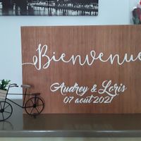 Il y a 1870 joursCoucou les fm, je voulais vous présenter notre panneau de bienvenue qui sera à l'entrée de notre salle de réception, il sera posé sur un chevalet. Trouvé sur etsy, le vendeur est in the wood for love. C'est excatement le rendu que je voulais 😊