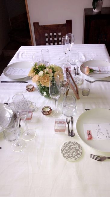 Hello les filles, Voila cet après midi j'ai effectué un test de table. Je ne sais pas si je doit mettre des bougeoirs pour plus de hauteur? Il faut prendre en compte que la table sera ronde, avec d'autres couverts (nous faisons avec les moyens du...