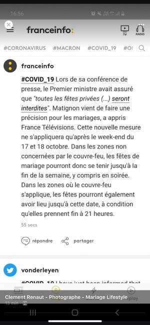Bonjour à toutes, Nous avons décidé mardi de tout reporter pour la deuxième fois mais de conserver notre mariage civil. J'ai appelé ma Mairie, il me dise que c'est maintenu avec 23 personnes mais je ne leur fait pas trop confiance lol Qu'en pensez...