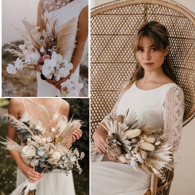 Hello ! En quoi sera votre bouquet ? Assorti ou non à la déco, le bouquet peut-être en fleurs fraîches, en papier, en tissu, en filtre à café, boutons... quelle est votre choix ?N’hésitez pas à partager un p’tite photo de votre inspiration !