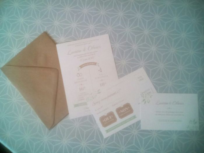 Voilà mon faire part !!!Mon thème est le vintage, couleur dominante le lin et le vert d'eau.Qu'en pensez-vous ??!!