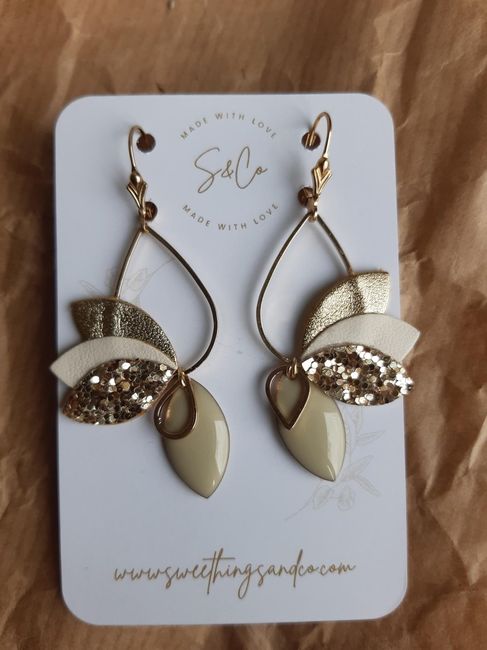 Coucou les FM ! Je suis très heureuse aujourd'hui car j'ai reçu mes boucles d'oreilles pour mon Jour J ! Elles sont comme je l'espérais, délicates, poétiques et personnalisées dorées pailletées et blanc en accord avec ma tenue et mes précieuses...
