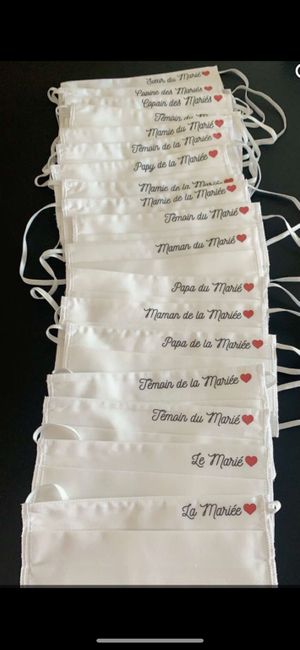 Coucou, On vient de recevoir nos masques personnalisés pour la mairie prévus pour nous-même, la photographe et les invités qui assisteront à la cérémonie civile. On demandera à ceux qui nous rejoindront (seuil maximal fixé par la mairie oblige) pour...