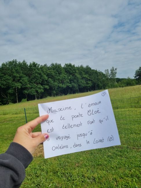 Bonjour à tous, j'ai une petite demande particulière pour faire un cadeaux à mon futur mari 😊 Est ce possible de me faire une photos de votre ville, région ou vos vacances avec un beau environnement avec un post-it ou une feuille avec ce message...
