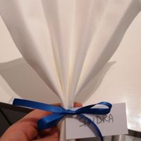 Il y a 1134 joursCoucou les FM, je m'étais fait une idée sympa pour les marque places. C'était de prendre un ruban et faire un joli noeud autour de la serviette un peu dans ce style là et ensuite mettre une petite étiquette en carton avec le nom écrit dessus. Mais ma...