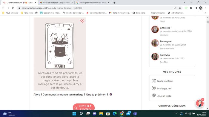 Coucou tout le monde 💜 Merci d'avoir participé jusqu'au bout ! Maintenant qu'on en sait un peu plus sur ton mariage, on va pouvoir tirer les cartes... FAIS UNE CAPTURE D'ÉCRAN DE CE GIF ET PUBLIE LA EN COMMENTAIRE !! 🧐👇 Alors ? Comment s'annonce ton...