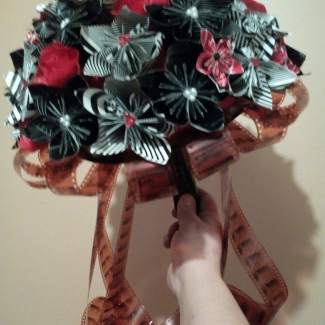 Bonjour les FM. Je voulais savoir si certaines auront un bouquet de mariée original. Ayant pour thÚme le cinéma, je ne voyais pas de fleurs fraßches dans ma déco. Alors je me suis lancée et j'ai fait mon bouquet en origami. Qu'en pensez vous? Et...