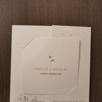 Il y a 1911 joursBonsoir à toutes ! Voici la réception du jour : l'échantillon test de nos faire part ! Ne faites pas attention aux "légères" cornures...la délicatesse de Monsieur 😅. Je l'ai trouvé sur l'Atelier Rosemood. Très bon rapport qualité/prix je trouve et...