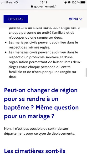 Bonjour à toutes, Nous sommes tombés de haut aujourd’hui , le gouvernement a mis à jour sa FAQ ... apparement ce n’est pas autorisé de sortir de son département pour un mariage. Et notre mariage civil est le 10 avril !! On est trop déçus pour nos...