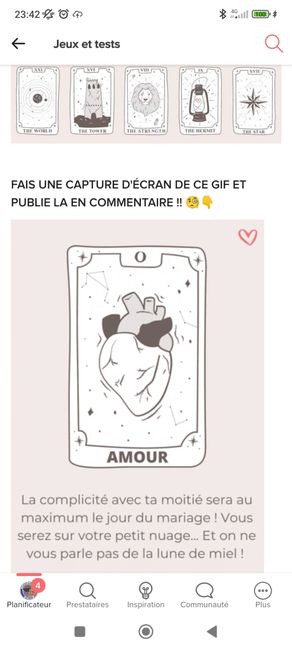 Coucou tout le monde 💜 Merci d'avoir participé jusqu'au bout ! Maintenant qu'on en sait un peu plus sur ton mariage, on va pouvoir tirer les cartes... FAIS UNE CAPTURE D'ÉCRAN DE CE GIF ET PUBLIE LA EN COMMENTAIRE !! 🧐👇 Alors ? Comment s'annonce ton...