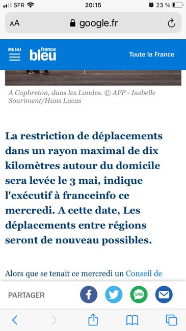 Hello tous le monde, encore la relou de service ^^ Voilà je commence à paniquer, la limite des 10km va être enlever ouf mais de ce que j’ai entendu à la radio les déplacements entre départements seront sûrement interdits. Hors les 3/4 de nos invités...