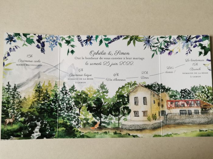 Bonjour tout le monde Juste un petit post pour vous partagez mon faire-part et surtout partager le magnifique travail de l'Atelier Eksento qui a créé mon faire-part sur mesure en aquarelle . On retrouve le domaine, les montagnes qui font...