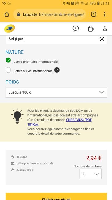 Bonjour à tous! Je viens de commander mes faires parts. J'ai voulu aller voir les collections de timbres à imprimer. Pour les commander, ils demandent le pays d'envoi et pour l'international il est noté qu'il faut remplir un formulaire de douane !!...