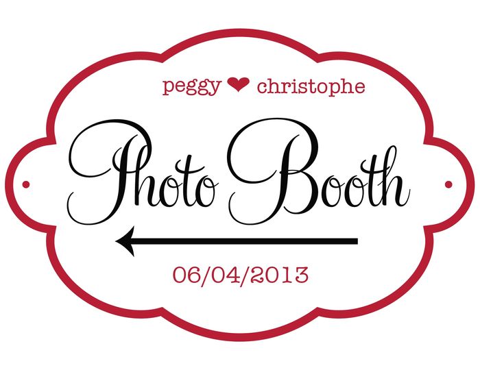 Je vous mets le lien si cela interesse quelqu'un http://www.weddingchicks.com/freebies/wedding-signs-labels/photo-booth-sign/ j'ai fais la mienne et très bon résultat avec nos noms , la date en vert et chocolat