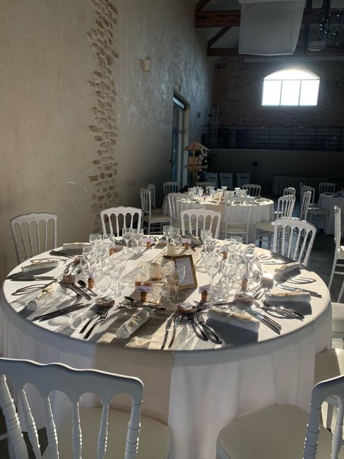 Et voilà c’est notre tour, le début d’une belle journée et le soleil est là ! Décoration des tables hier et les fleurs arrivent ce matin et je ne suis pas peu fière de ma déco maison !