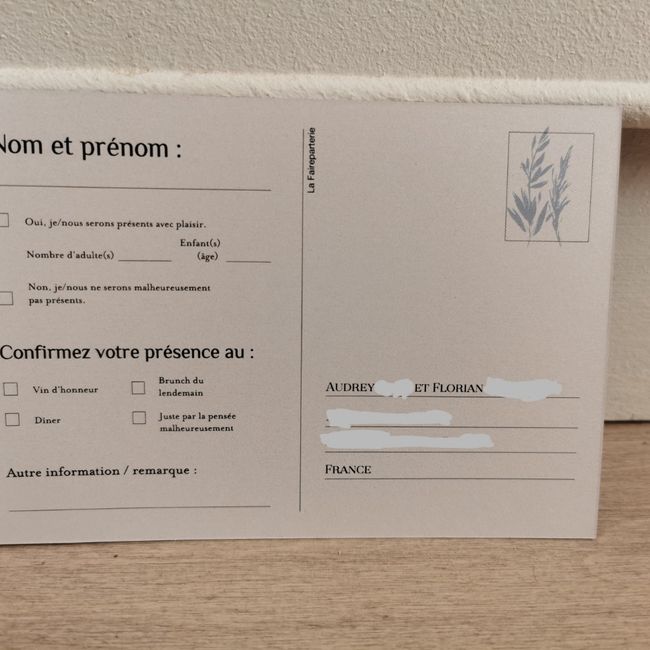 Bonjour à tous, Je voulais partager notre joie d'avoir reçu nos faire-parts et de les avoir enfin envoyés ! Psychologiquement ça donne vraiment la sensation du décompte qui approche et c'est excitant !
