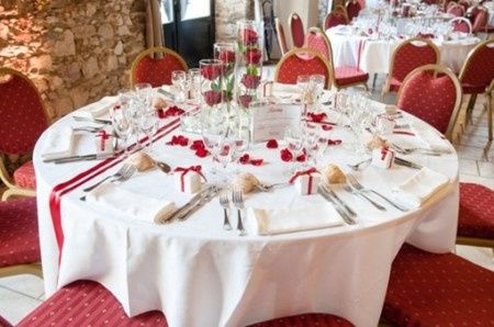 Bonjour, Voici une idée qui est peut être plus économique que le traditionnel chemin de table : les rubans. Sur fond blanc ou coloré selon les couleurs de votre mariage, disposez des bandes de rubans plus ou moins larges, croisez-les, juxtaposez-les...