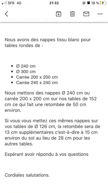 Bonjour a tous ... Je suis en plein stress j'ai besoin de nappes rondes.Es tables font 150cm de diamètre, je ne sais pas quoi prendre comme taille de nappes et il faut que je me presse car j'ai demander en location pas disponible pour le 31 juillet...