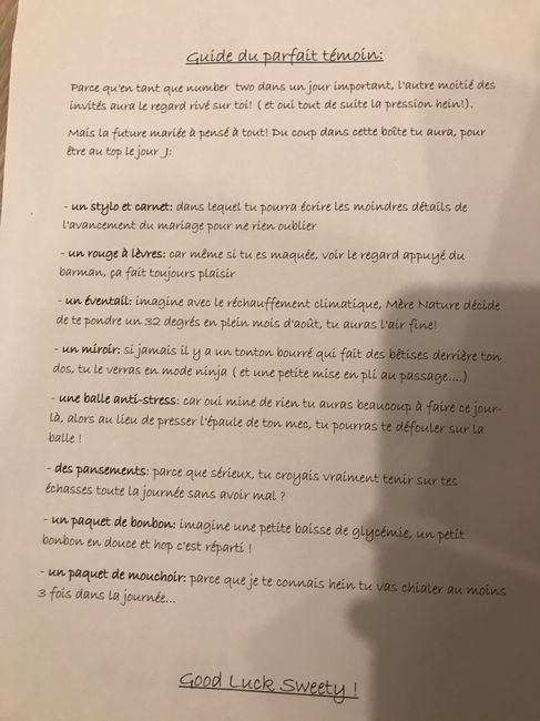 Bonsoir je voulais juste partager avec vous ma petite surprise pour les deux témoins (il manque la balle anti stress!) 🙂