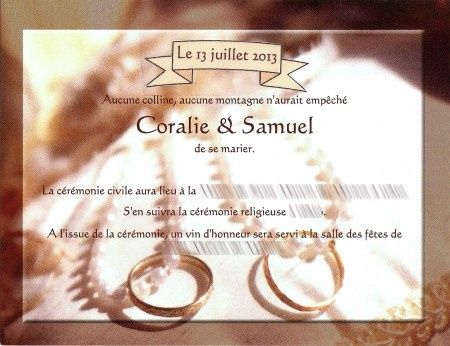 Bonjour, voila pour mon premier poste ici, je viens pour avoir des idées. Je vous explique: Avec ma chère et tendre nous avons décider de faire faire nos faire part sur internet (on a utilisé Vistaprint). Après avoir lu et relu notre texte de faire...