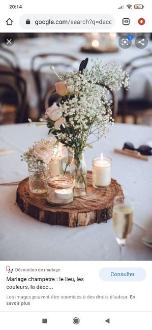 Bonjour, les futurs mariés Pouvez vous me montreer votre centre de table sur le thème champêtre, rustique, boheme chic , je suis en manque d'imagination 🤣 Merci a celles qui me répondrons. Bonne journée 🌞😄