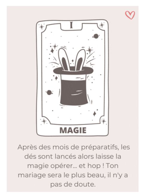 Coucou tout le monde 💜 Merci d'avoir participé jusqu'au bout ! Maintenant qu'on en sait un peu plus sur ton mariage, on va pouvoir tirer les cartes... FAIS UNE CAPTURE D'ÉCRAN DE CE GIF ET PUBLIE LA EN COMMENTAIRE !! 🧐👇 Alors ? Comment s'annonce ton...