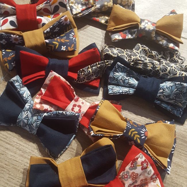 Bonjour les FM, j'ai eu une petite idée et je voulais votre avis. Je me suis mise à la couture récemment, et je me disais que je ferai bien un "bar à noeuds papillons" pour mes invités masculins et des headbands fleuries pour les invitées féminines,...