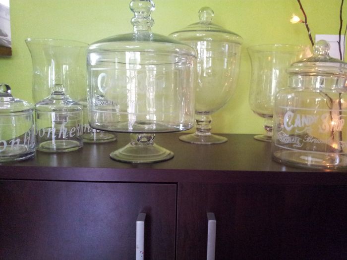 Bonjour a toutes. Je me marie l'année prochaine sur le theme de la gourmandise, et je veux faire un bar a bonbon, et pour sa il me faut des bonbonieres. Alors si vous avez des bonbonieres en verre pas cher, je suis toute oui!!! merci