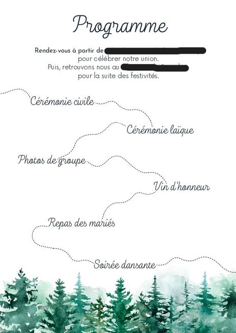 Bonjour, On a un thème très bucolique et végétal, et pour le programme dans le faire-part j'ai pensé à organiser les étapes de la journée autour d'une branche, d'un chemin ou de l'éclosion d'une fleur... Mais j'ai besoin d'inspirations ! Si vous avez...