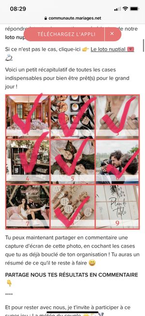 Si tu viens de tomber sur cette page c'est que tu as pu répondre à toutes les questions précédentes de notre loto nuptial ❤️ ! Si ce n'est pas le cas, clique-ici 👉 Le loto nuptial 🎟️💍 Voici un petit récapitulatif de toutes les cases indispensables...