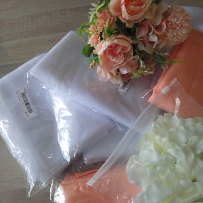 Coucou, Un petit posté pour montrer ma dernière commande reçu aujourd'hui 😊du tulle pour décorer les bancs ,du chemin de table rosé ,des fleurs artificielles et un peu de créatif pour fabriquer nos cornets en kraft ,tout pour essayer je l espère de...