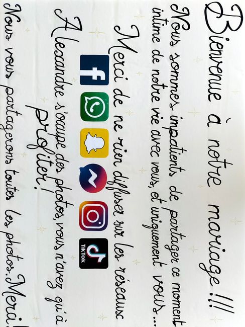 Bonjour à tous je suis à la recherche d’une façon jolie mais claire de demander à mes invités de ne pas prendre de photos pendant la cérémonie et de ranger leurs téléphones portables!!! Si vous avez des idées je suis carrément preneuse